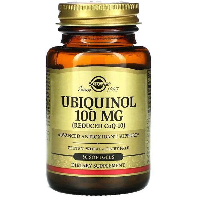 Убіхінол SOLGAR "Ubiquinol (Reduced CoQ10)" з коензим Q10, 100 мг (50 гелевих капсул)