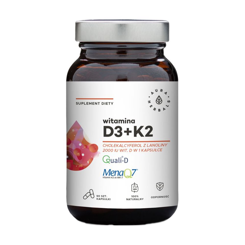 Вітамін Д3 та K2 Aura Herbals Vitamin D3 2000 МО + K2 100 мкг, 90 капсул