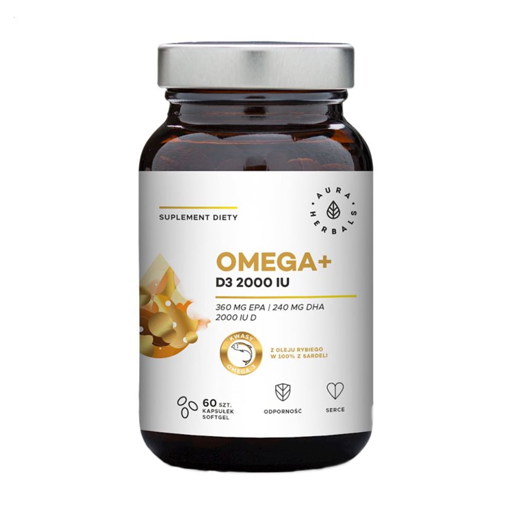 Омега+ Вітамін D3 Aura Herbals Omega+ Vitamin D3 2000 МО, 60 капсул