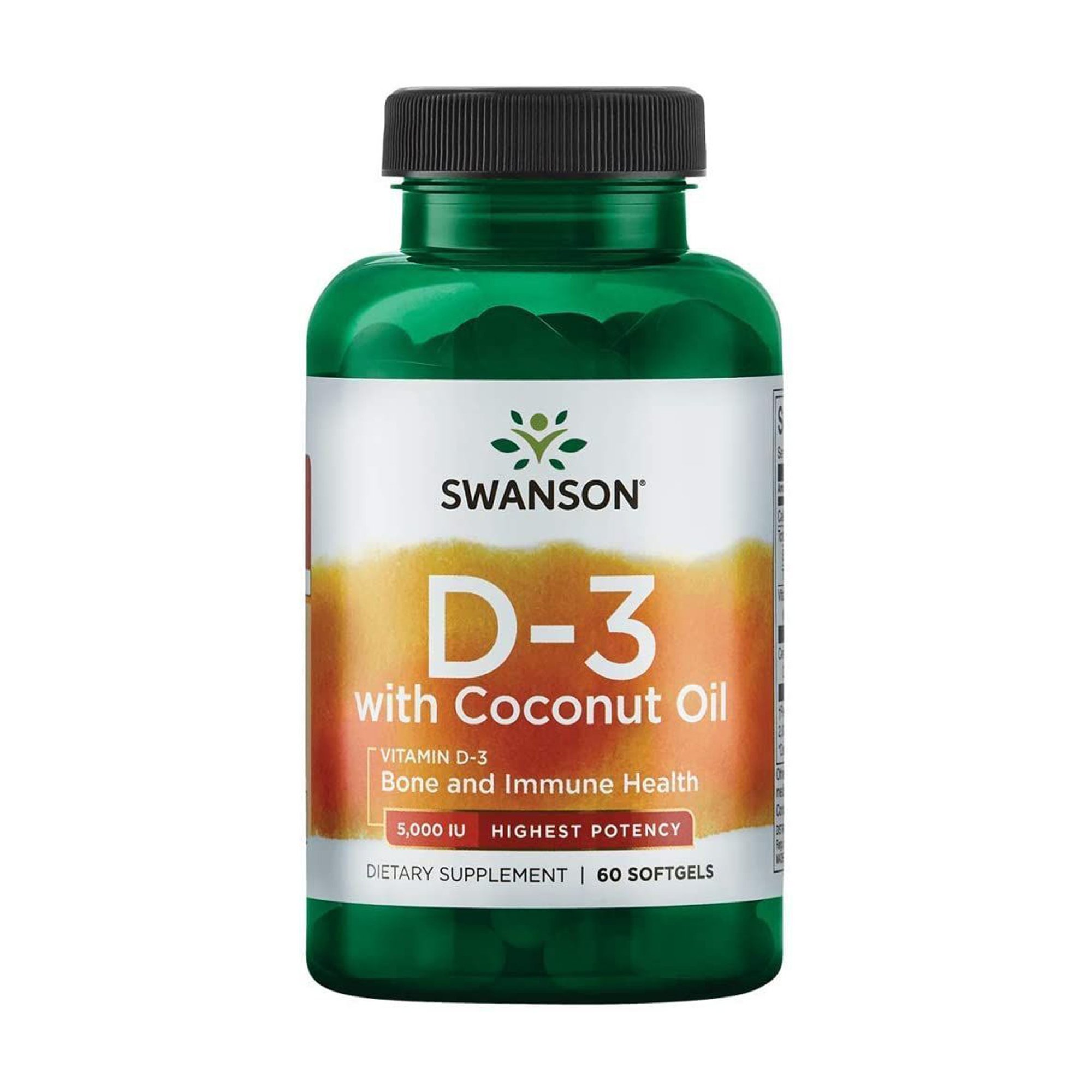Вітамін Д3 Swanson D3 with Coconut oil Highest Potency з кокосовою олією, 125 мкг, 60 гелевих капсул