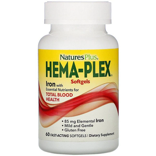 Залізо та поживні речовини, Iron Hema-Plex, Nature's Plus, 60 гелевих капсул