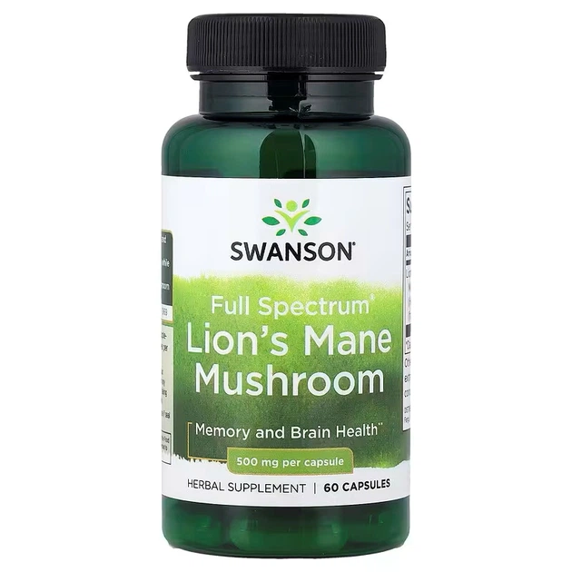 Гриб левова грива Swanson Lion's Mane Mushroom 500 mg Full Spectrum, 60 caps