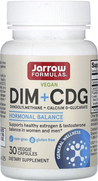 Дііндолілметан та D-глюкарат кальцію Jarrow Formulas DIM + CDG 30 вегетаріанських капсул (790011290650)