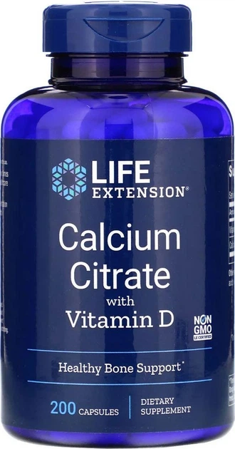 Цитрат кальцію з вітаміном Д Calcium Citrate with Vitamin D Life Extension 200 капсул (LEX-19632)