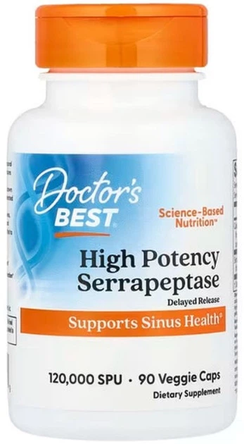 Серрапептаза Doctor's Best Serrapeptase 120,000 SPUs 90 вегетаріанських капсул в упаковці (ARE-573422)
