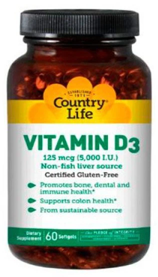 Вітаміни Country Life VITAMIN D3 5000 IU 60 капсул (015794058076)