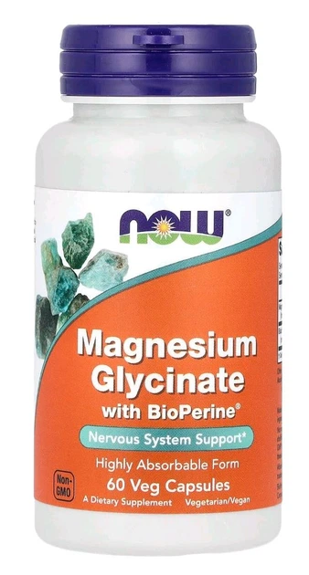 Магній гліцинат Now Foods з BioPerine 60 вегетаріанських капсул