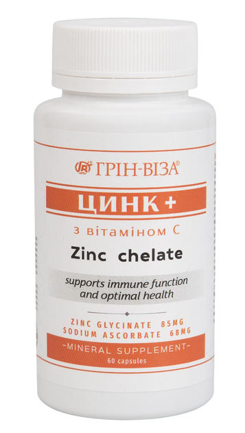 Цинк+ 60капс., хелатна формула, покращує роботу імунітету, Грін-Віза.