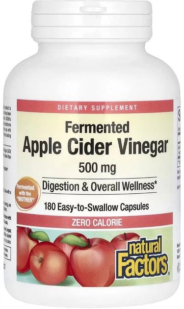 Яблучний оцет ферментований Natural Factors Fermented Apple Cider Vinegar 500 мг 180 капсул