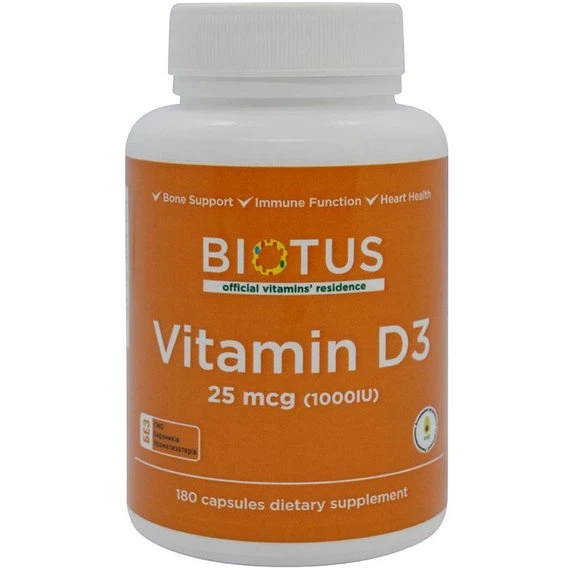 Вітамін D3, Vitamin D3, Biotus, 1000 МО, 180 капсул