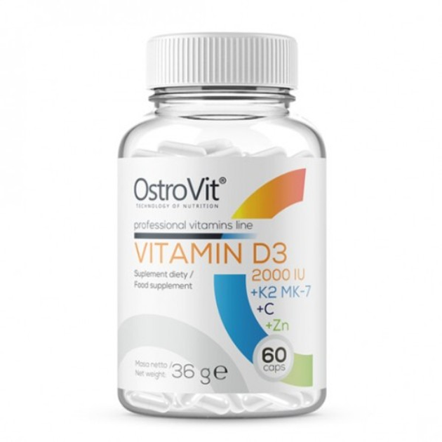 Вітамін D для спорту OstroVit Vitamin D3 2000 IU + K2 MK-7 + C + Zinc 60 Caps