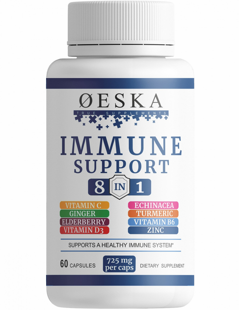 Імунітет комплекс 8 в 1 Oeska 60 капсул | Вітаміни С, Д3, В-6, Цинк, Імбир, Куркума, Ехінацея, Бузина | Імунітет