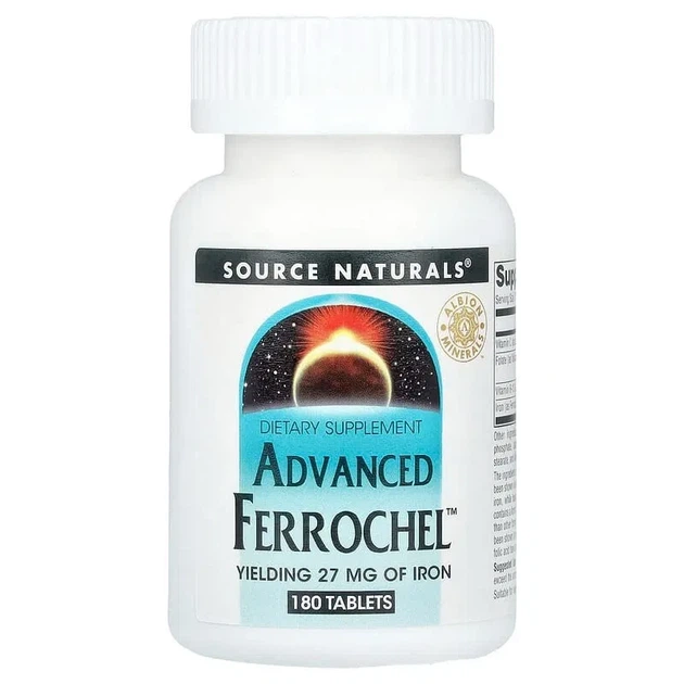 Залізо Source Naturals Advanced Ferrochel 27 мг 180 таблеток