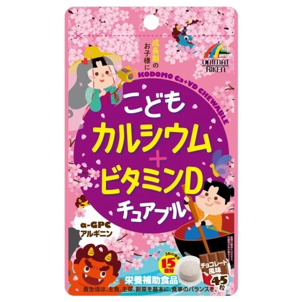 Комплекс для покращення уваги у дітей Unimat Riken Kids Calcium & Vitamin D 45 Chewable Tabs Chocolate
