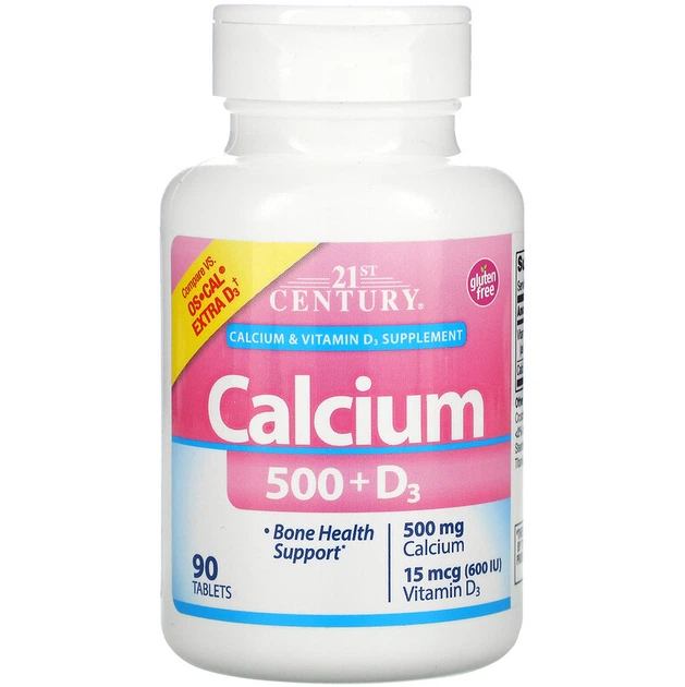 Кальцій з вітаміном D3 21st Century "Calcium 500 + D3 Plus Extra D" 500 мг/600 МО (90 таблеток)