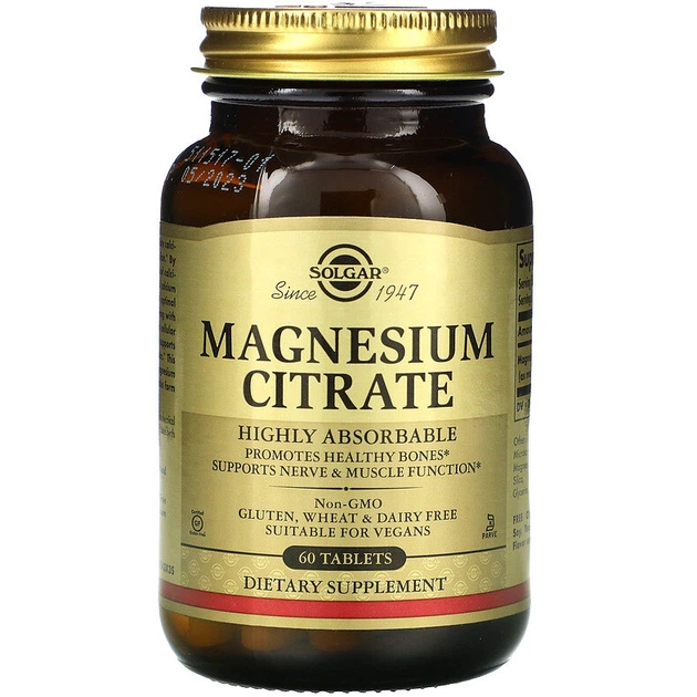 Цитрат магнію SOLGAR "Magnesium Citrate" підтримка нервової системи, 400 мг (60 таблеток)