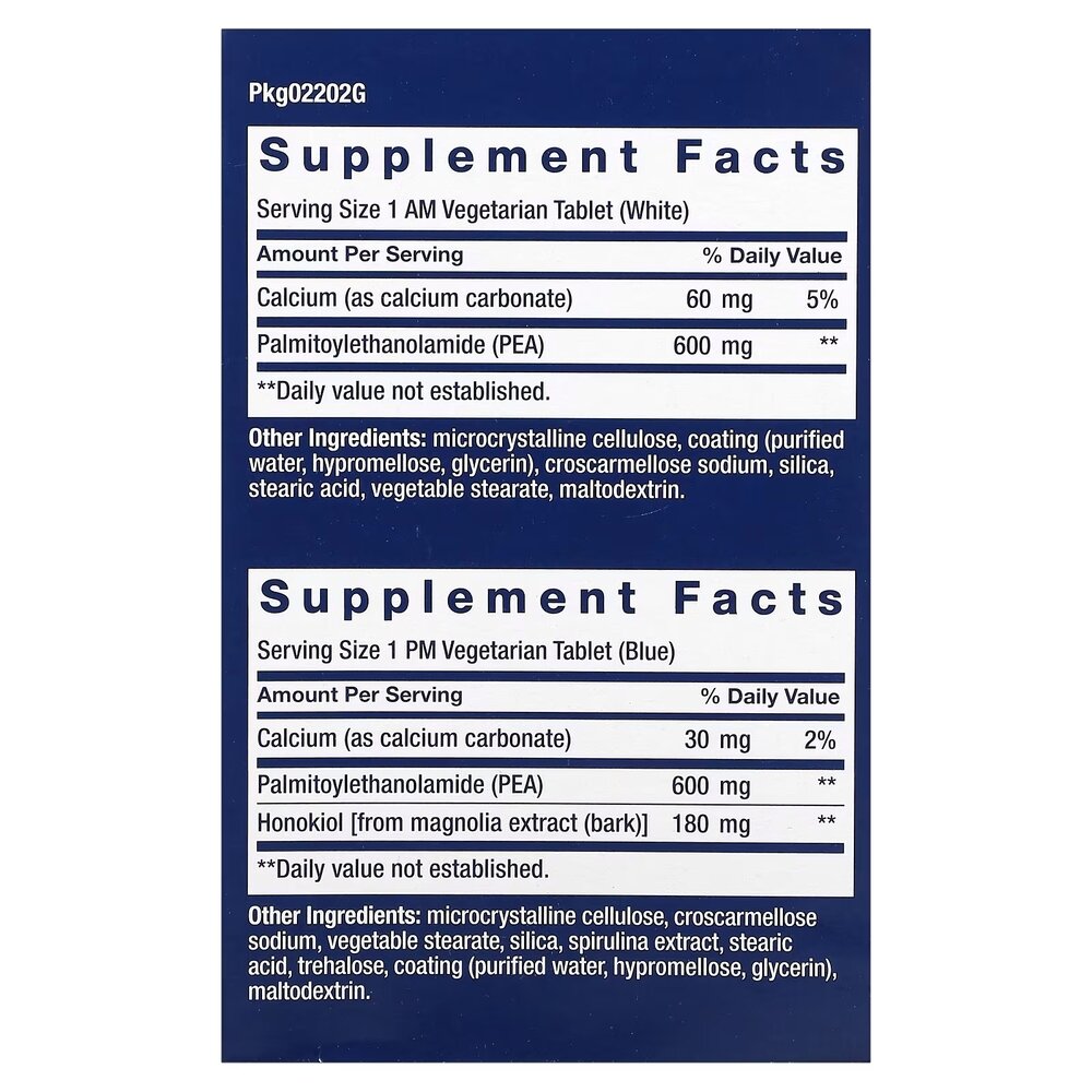 Life Extension ComfortMAX™ Double-Action Nerve Support - це препарат, призначений для підтримки здоров'я нервової системи та зниження дискомфорту. Поєднує в собі дві формули для ранкового та вечірнього прийому, забезпечуючи цілодобову підтримку нервів. Особливості Life Extension ComfortMAX™: - Містить палмітоїлетаноламід (PEA), який допомагає заспокоювати збуджені нерви, пригнічуючи запальні чинники. -