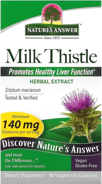 Природні добавки Nature's Answer Розторопша Milk Thistle 60 вегетаріанських капсул