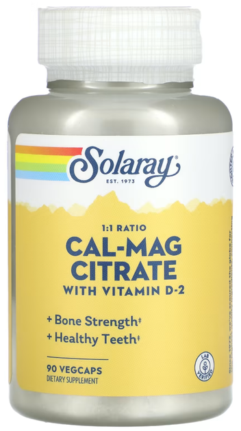 Магній та кальцій цитрат із вітаміном D2 Solaray Cal-Mag Citrate with Vitamin D-2 90 вег капс