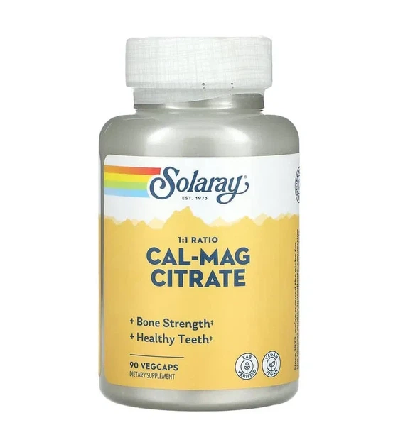 Solaray, Цитрат кальцію та магнію, співвідношення 1: 1, 90 вегетаріанських капсул