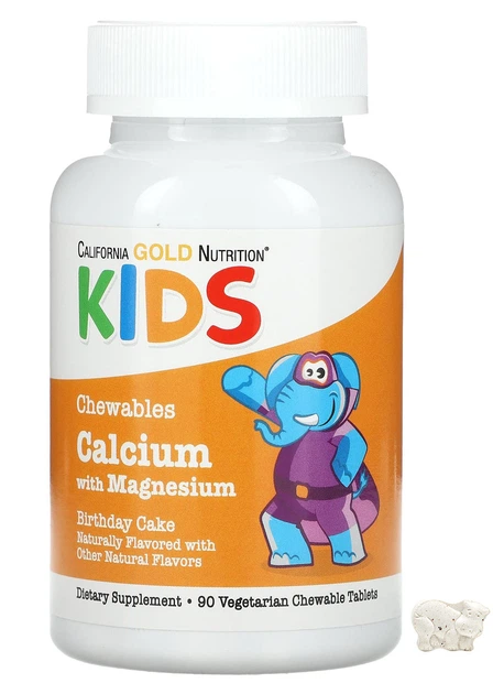 California Gold Nutrition жувальний кальцій із магнієм для дітей смак святкового торта 90 вегетаріанських пігулок