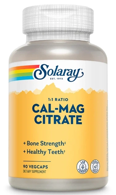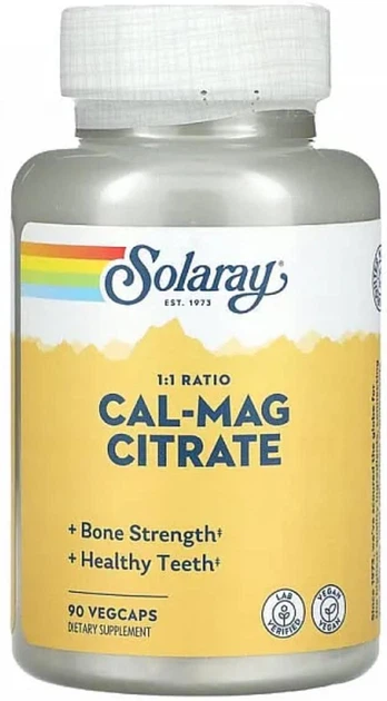 Цитрат кальцію та магнію, у співвідношенні 1:1 Solaray Calcium Magnesium Citrate 90 вег капс