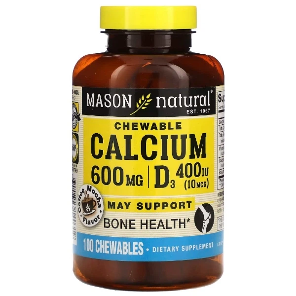 Мікроелемент Кальцій Mason Natural Calcium 600 mg Plus Vitamin D3 100 Chewables Cafe Mocha