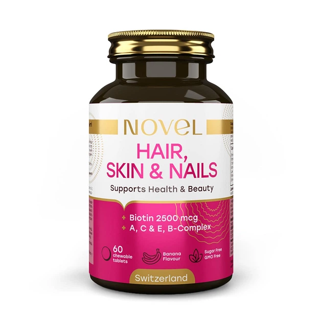 Вітаміни для волосся, шкіри та нігтів, Skin, Nails & Hair, NOVEL, 60 жувальних таблеток