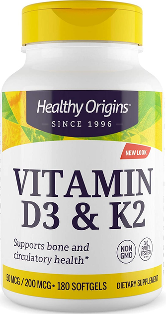 Вітамін Д3 і К2 Vitamin D3 + K2 Healthy Origins 180 капсул (HOG-27453)