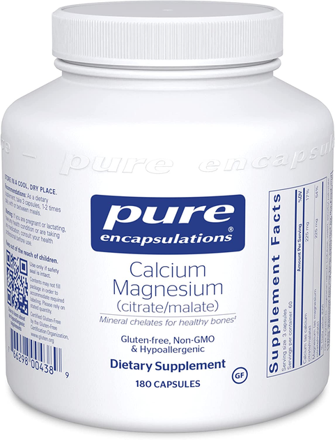 Магній Кальцій (цитрат/малат), Calcium Magnesium (citrate/malate), Pure Encapsulations, 180 капсул (PE-00438)
