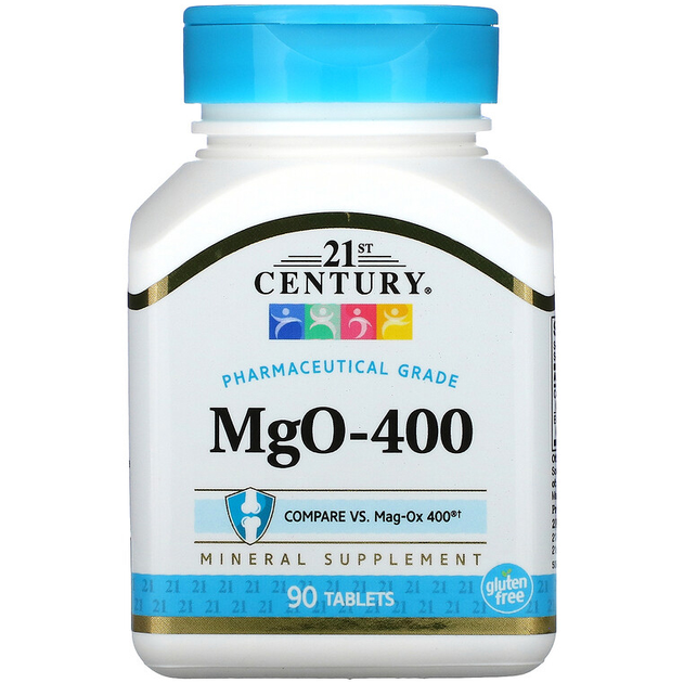 Оксид магнію 21st Century "MgO-400" з карбонат кальцію для підтримки кісток та м'язів, 483 мг (90 таблеток)
