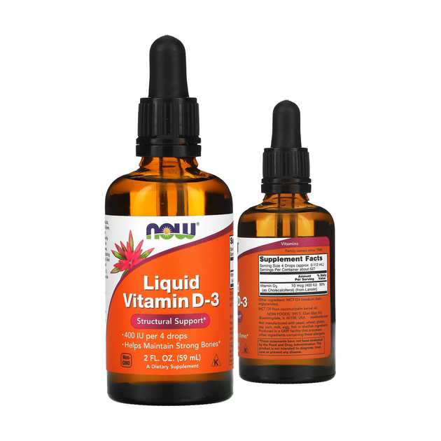 NOW Foods рідкий витамин D3 10 мкг 400 МО 59 мл 2 рідкий. унції Д3 для кісток імунітету шлунка для дітей айхерб США харчова