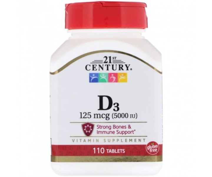 Вітамін Д3, Сильні кістки та підтримка імунітету, Vitamin D3 5000, 21st Century 110таб(34453210)