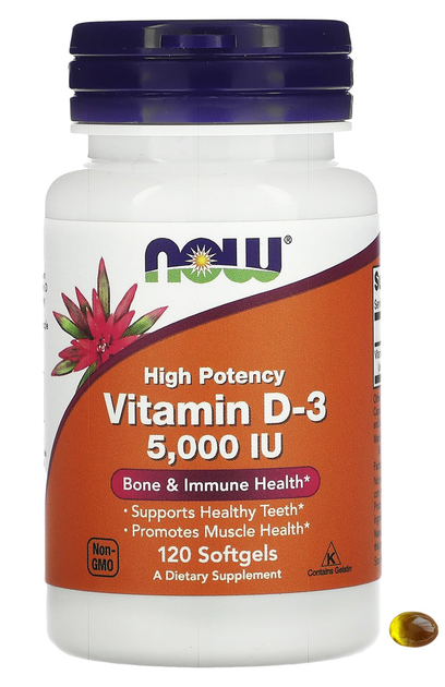 NOW Foods вітамін D3 високоактивний 5000 МО 120 капсул для імунітету кісток д3 харчова добавка айхерб нау фудс імуностимулят