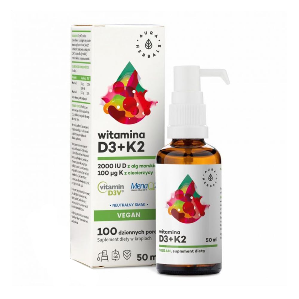 Вітамін Д3 та K2 Aura Herbals Vitamin D3 2000 МО + K2 Vegan, в краплях, 50 мл