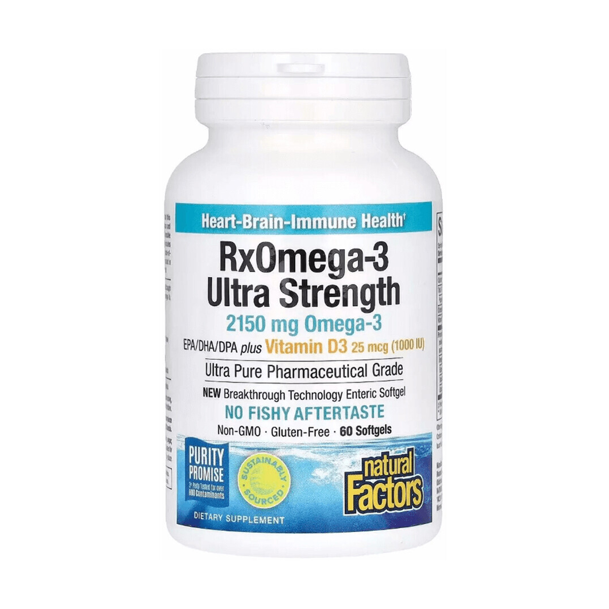 Омега-3 ультра та вітамін D3 Natural Factors RxOmega-3 Ultra Strength with Vitamin D3, 2150 мг та 25 мкг, 60 гелевих капсул