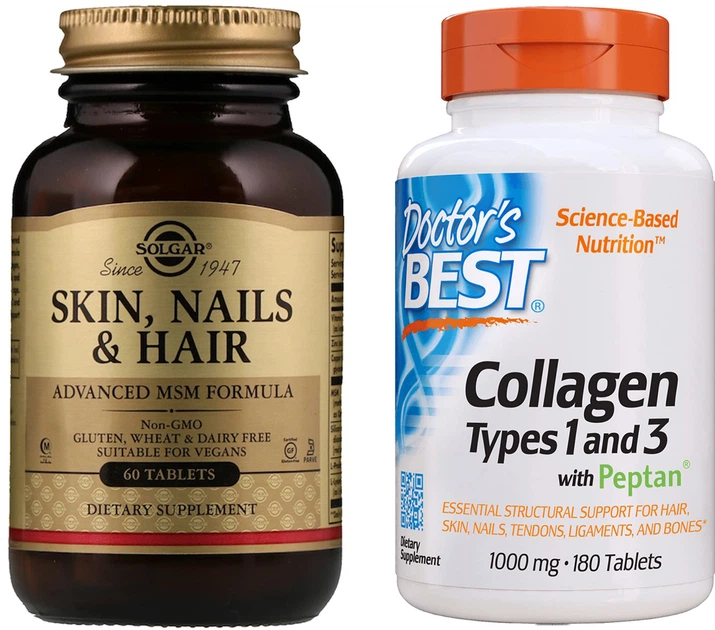 Набір МСМ Skin, Nails & Hair Поліпшена формула для шкіри, нігтів та волосся натуральна добавка Solgar 60 таблеток + Колаген