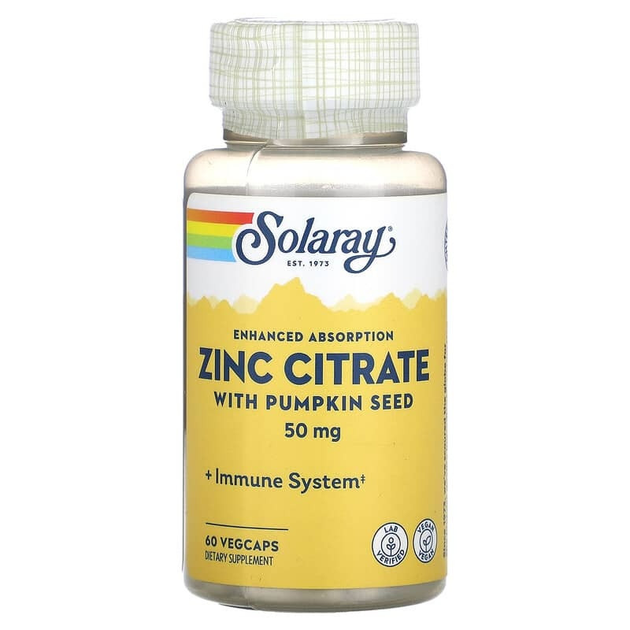 Цинк цитрат Solaray Zinc Citrate 50 мг з гарбузовим насінням 60 капсул