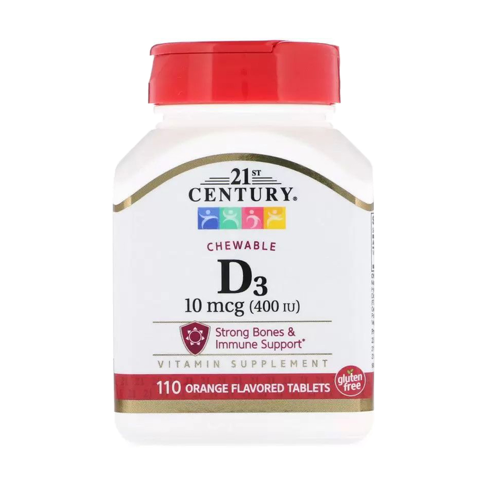 Вітамін Д3 21st Century Chewable Vitamin D3, 10 мкг, зі смаком апельсина, 110 жувальних таблеток