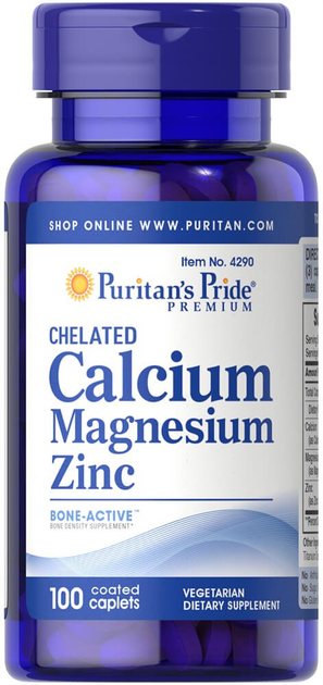 Кальцій-магній-цинк хелат, Chelated Calcium Magnesium Zinс, Puritan's Pride, 100 капсул (PTP-14290)