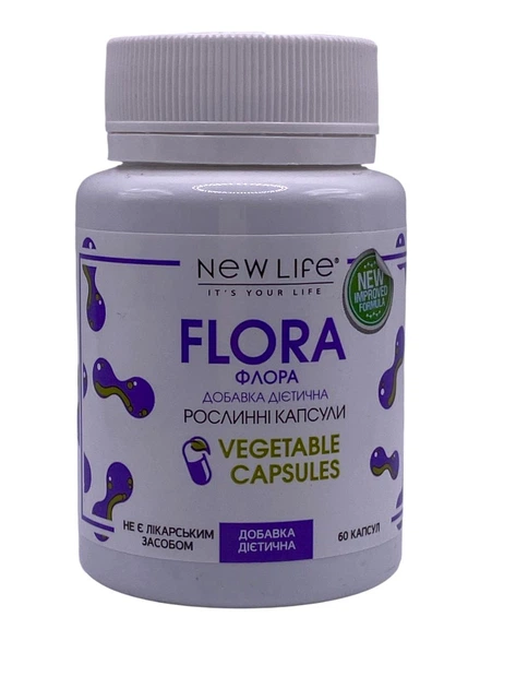 Flora New Life флора активний пробіотик посилена формула при дисбактеріозі 60 рослинних капсул