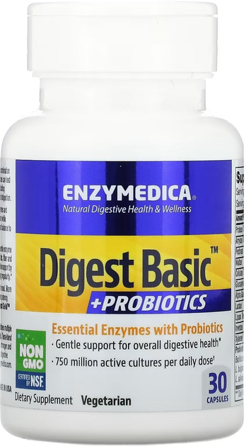 Ферменти з пробіотиками Digest Basic + Probiotics Enzymedica 30 капсул (670480130506)