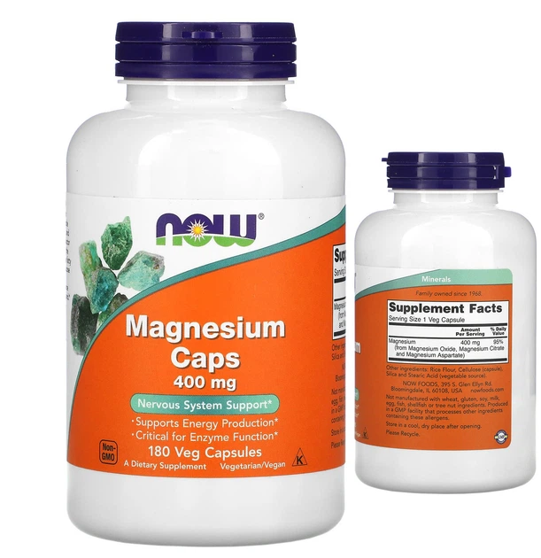 NOW Foods капсули з магнієм 400 мг 180 вегетаріанських капсул магне найкращий магній для нервної системи вітамін США
