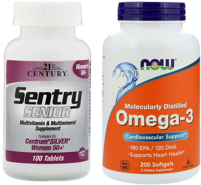 Набір Мультивітаміни і мультімінерали 21st Century для жінок 50+ Sentry Senior 100 таблеток + Жирні кислоти Now Foods Омега-