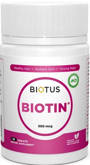 Біотин выд випадіння волос Biotus Biotin 300 мкг 30 таблеток в упаковці (ARE-574468)