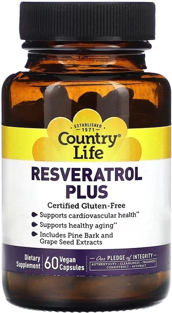 Ресвератрол Плюс, Resveratrol Plus натуральна добавка Country Life 60 капсул (015794073178)