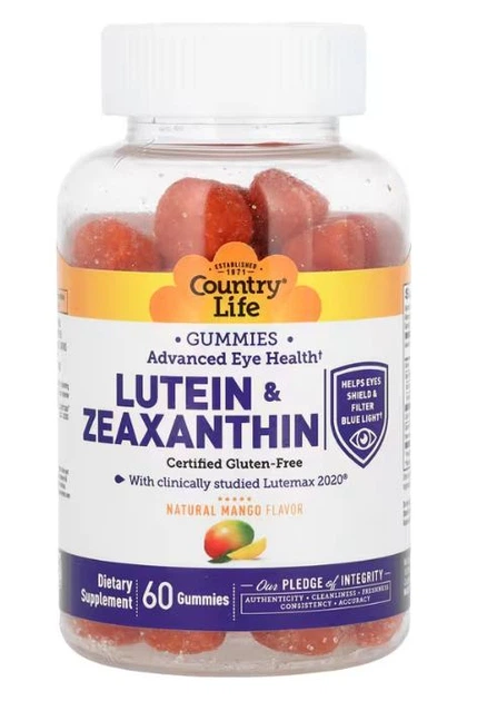 Натуральна добавка Country Life Lutein & Zeaxanthin Gummies Natural Mango 60 жувальних таблеток