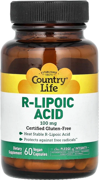 Добавка Country Life R-Lipoic Acid (R - Ліпоєва кислота) 100 мг 60 капсул (015794016533)