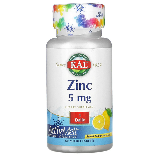 Цинк Zinc 5 мг ActivMelt Sweet Lemon солодкий лимон KAL, 60 мікротаблеток