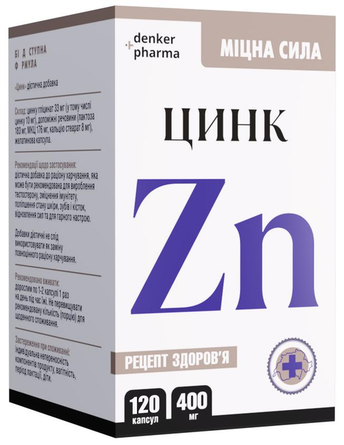 Цинку хелат (Zinc chelate), хелатний комплекс Міцна Сила, 120 капсул, нова біодоступна форма від Denkerpharma